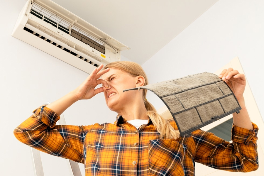 Strange noises or unpleasant smells from your AC indicate underlying issues that need attention. Ignoring them can lead to bigger problems and reduced efficiency.